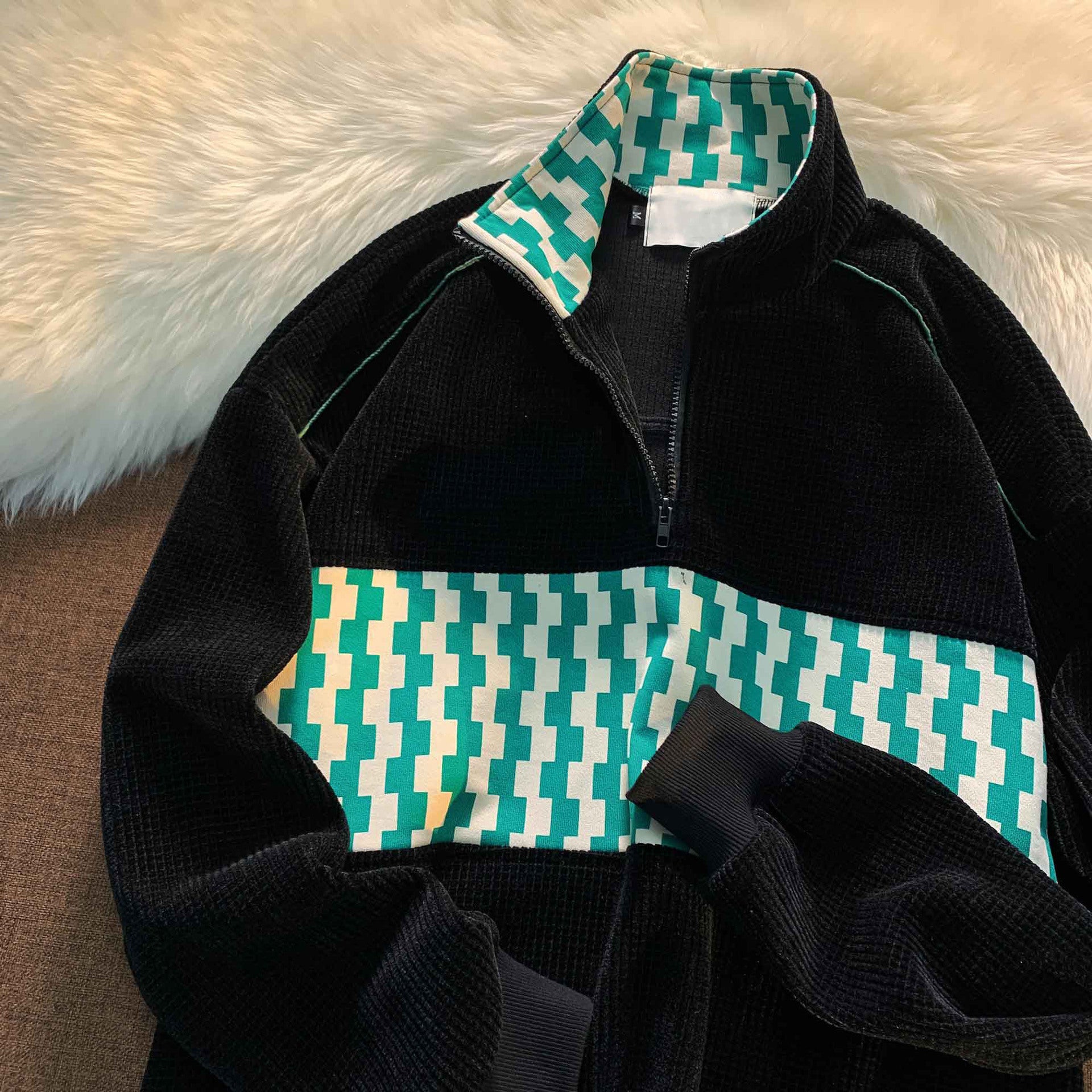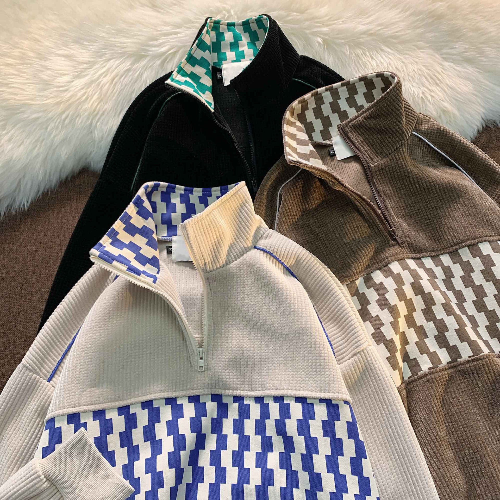 Amerikaanse Stijl Stitch Wafelgebreide Trui met Staande Kraag voor Heren