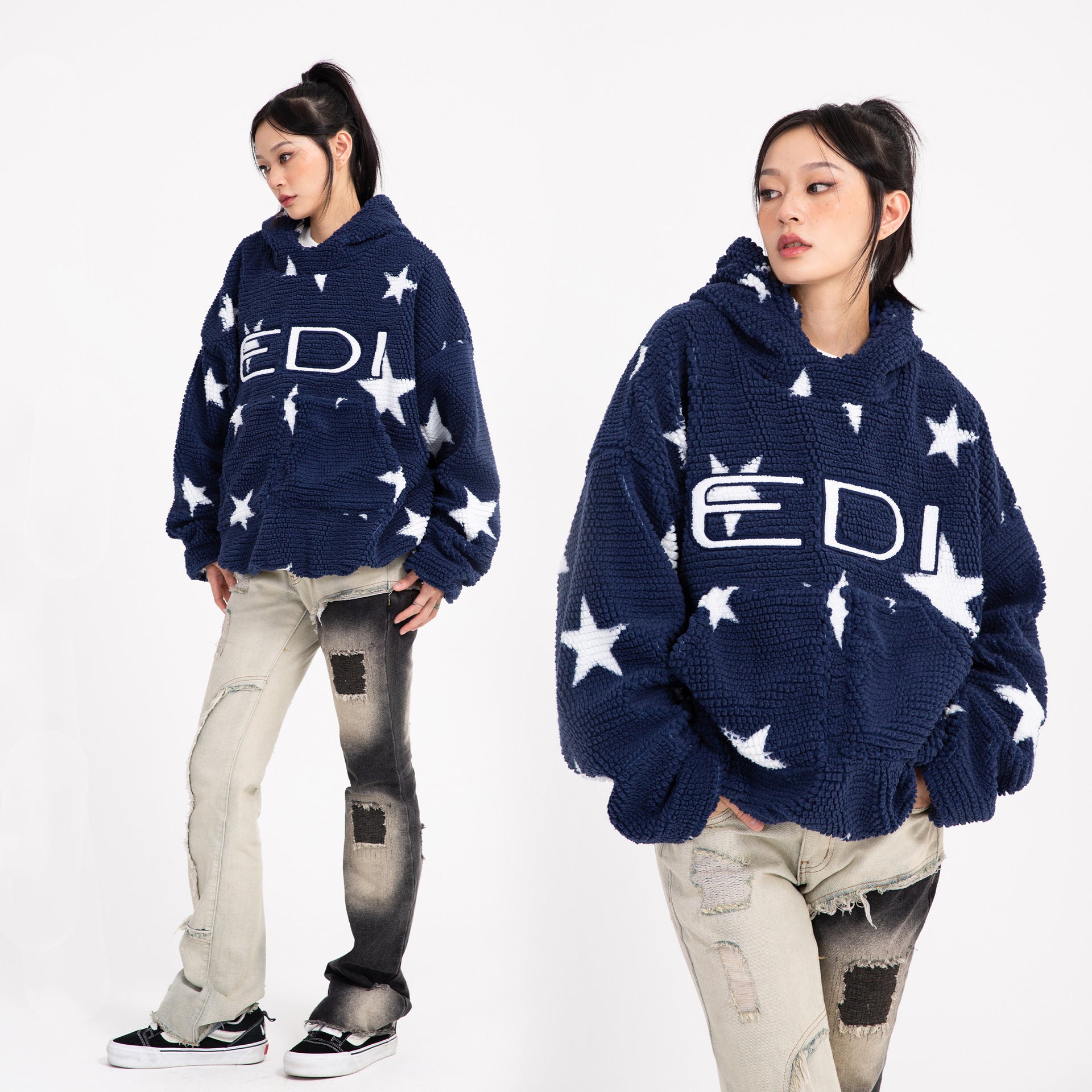 Amerikaanse Street Style Losse Capuchon Trui met Sterpatroon voor Unisex