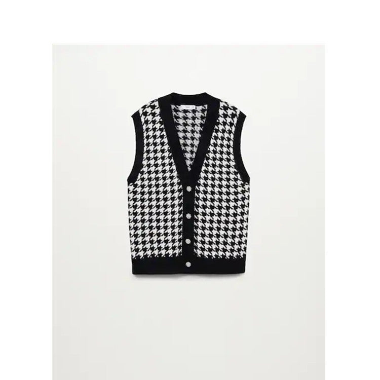 Europese en Amerikaanse Stijl Mouwloze Gebreide Trui-Vest met Geruitpatroon voor Dames