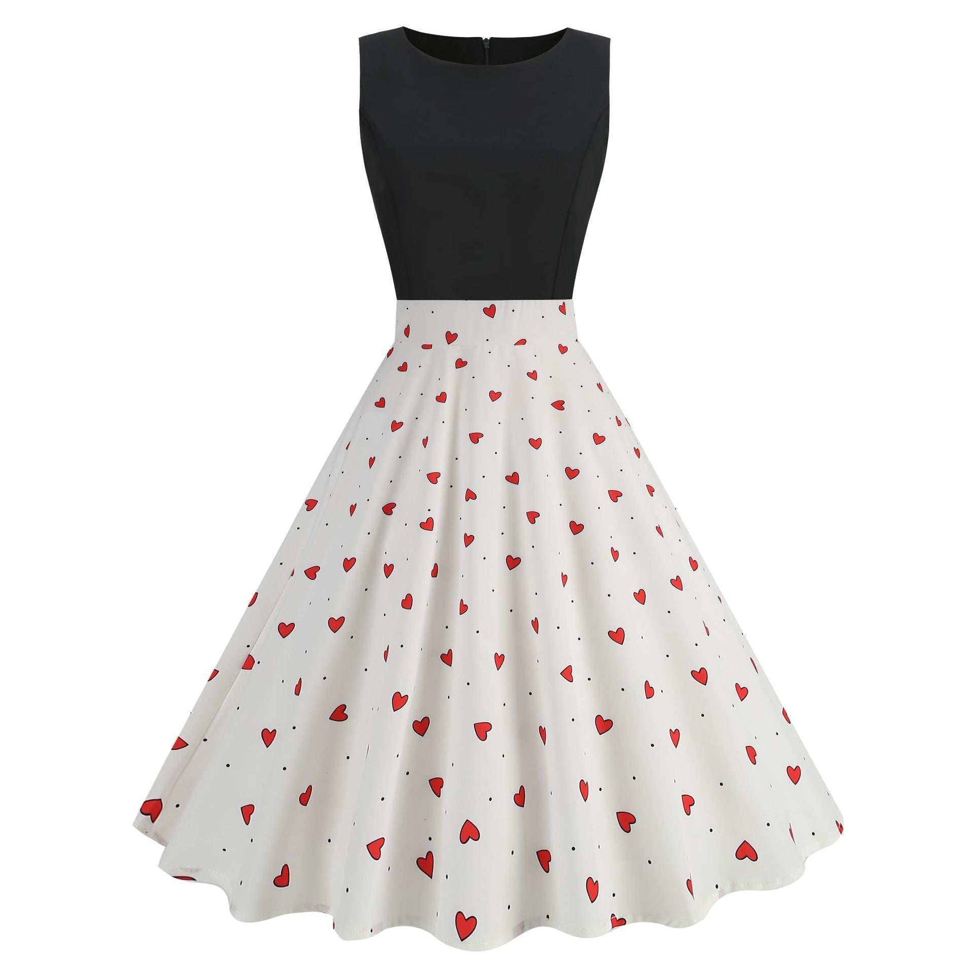 Hepburn Style Elegante Swingjurk met Ronde Hals met Bedrukte Patroon voor Dames & Plus-size