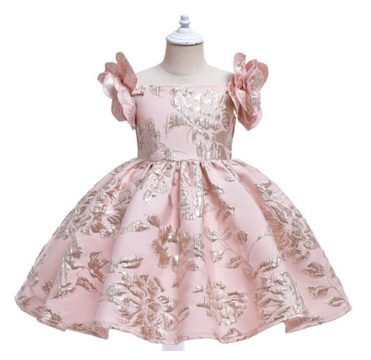 Jacquard geborduurde schouderbloemen Retro Europese en Amerikaanse meisjesjurken