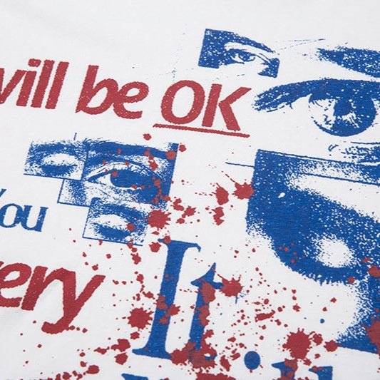 Eenvoudige Effen Kleur Oversized Casual Vintage Cartoonprint T-shirt met Ronde Hals en Lange Mouwen voor Heren