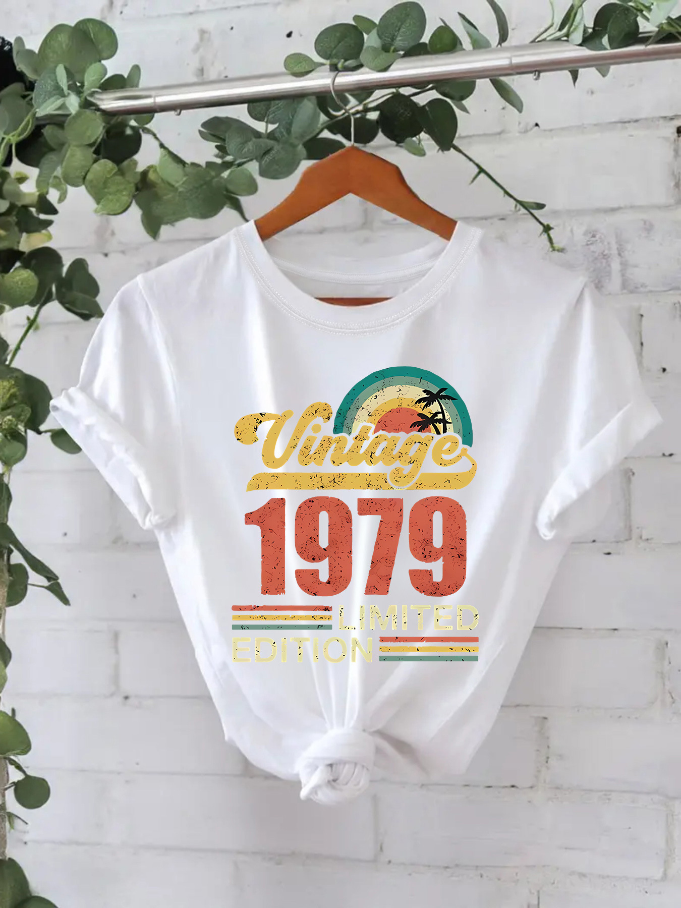 Trendy Modieuze Streetwear Effen Kleur Casual Vintage 1979 Print T-shirt met Ronde Hals en Korte Mouwen voor Dames & Plus-Size
