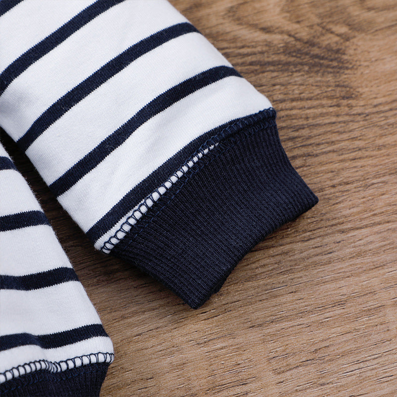 Tweedelige Set Casual Gestreepte Sweatvest met Capuchon en Geborduurde Cartoon en joggingbroek voor Baby's/ Peuters