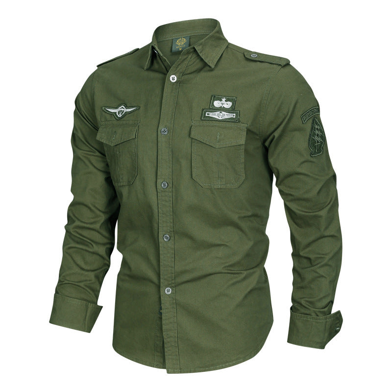 Amerikaanse Stijlvolle Katoenen Cargo-Overhemd met Patchwork en Lange Mouwen voor Heren