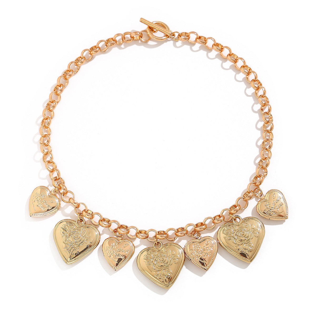 Elegante Unieke Retro Ronde Sleutelbeen Halsketting/Armband met Hartvormige Bedeltjes van Legering en OT Gesp voor Dames