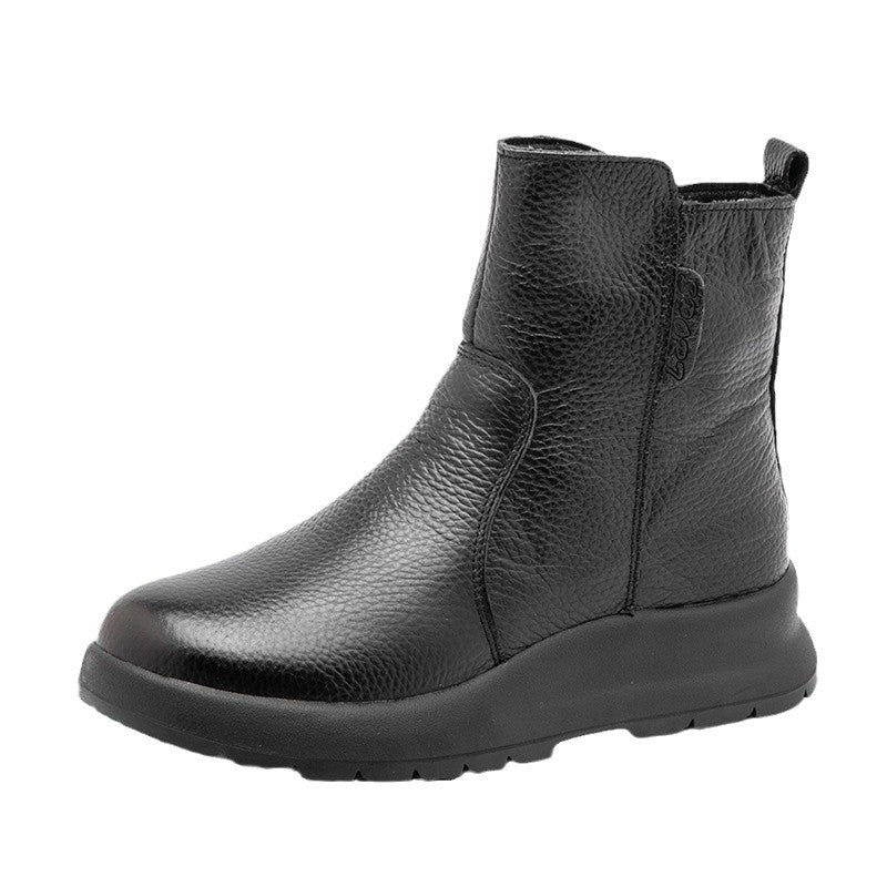 Trendy Casual Effen Kleur Comfortabele Enkellaarzen van Echt Leer met Ronde Neus en Platte Zool voor Dames