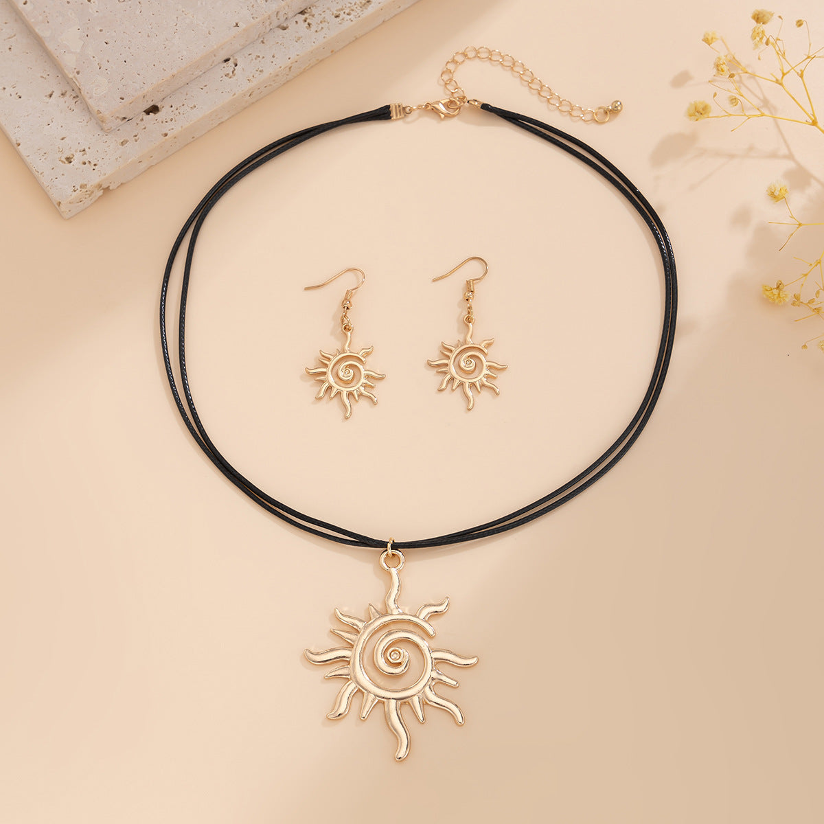 Modieuze Eenvoudige Diverse Sieradenset Retro Sun Halsketting en Oorbellen (Halsketting ook Apart Verkrijgbaar) Imitatie Parelmoer en Verstelbare Sluiting voor Dames