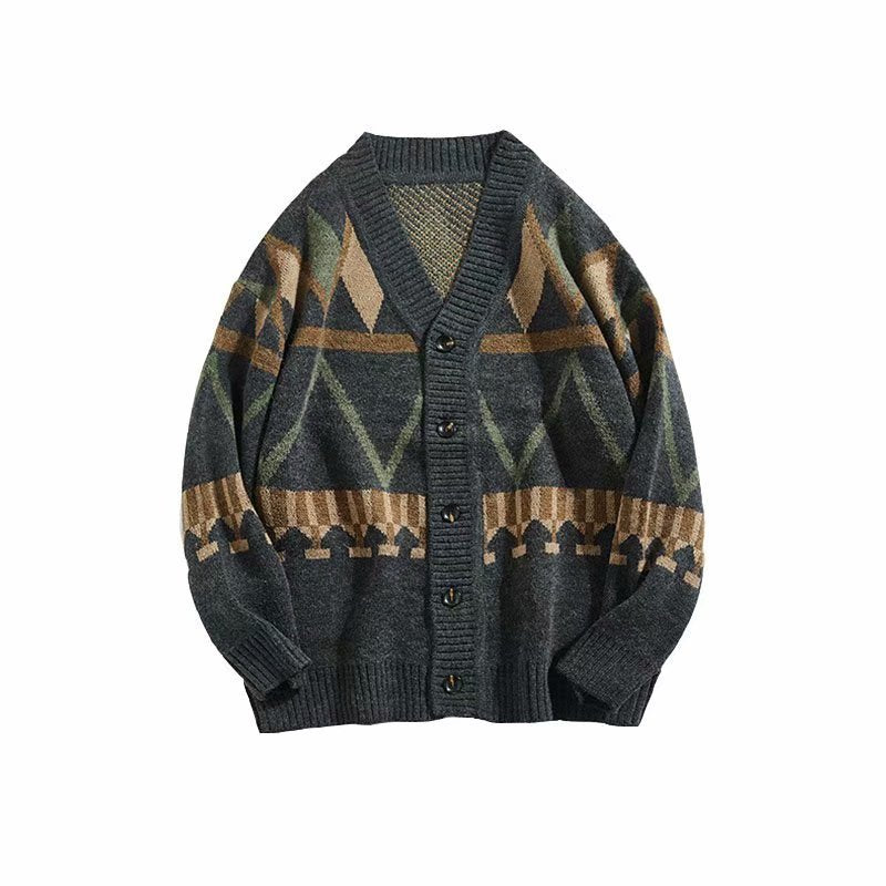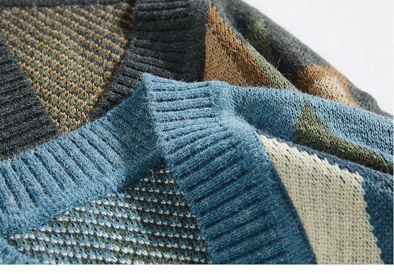 Etnische Stijl Gebreide V-hals Trui-vest van Wol voor Heren