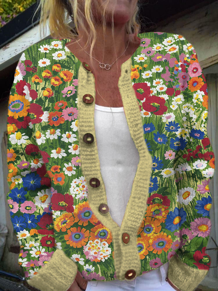 Casual 3D digitaalprint Gebreide Trui-vest met Lange Mouwen en Knoopsluiting voor Dames & Plus-size
