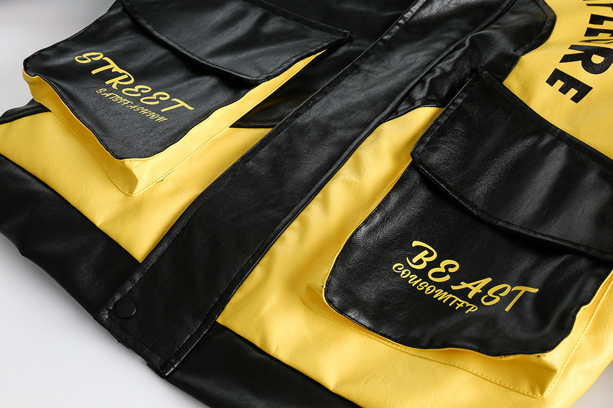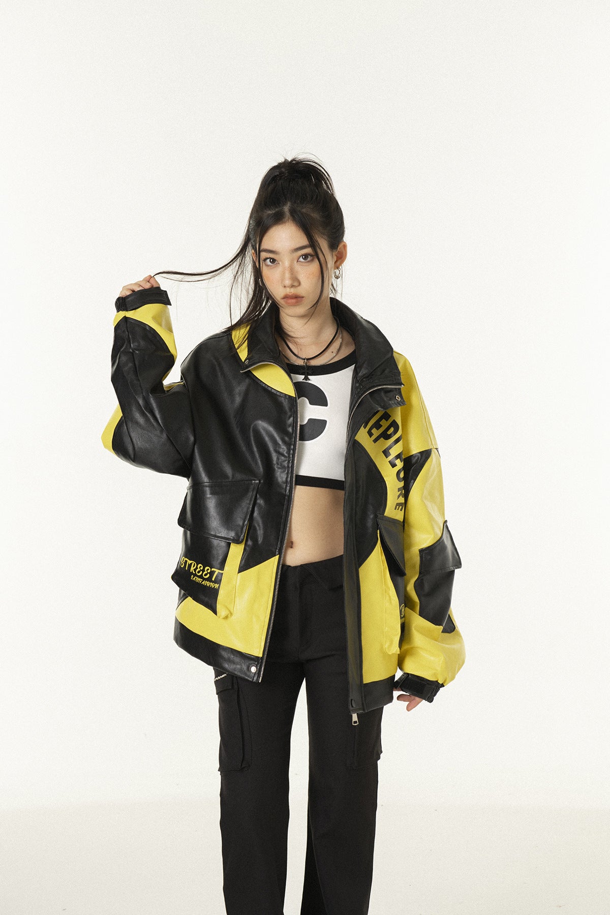 Amerikaanse Street Style Jacket van PU-Leer met Patchwork en Lettersprint Dames & Plus-size