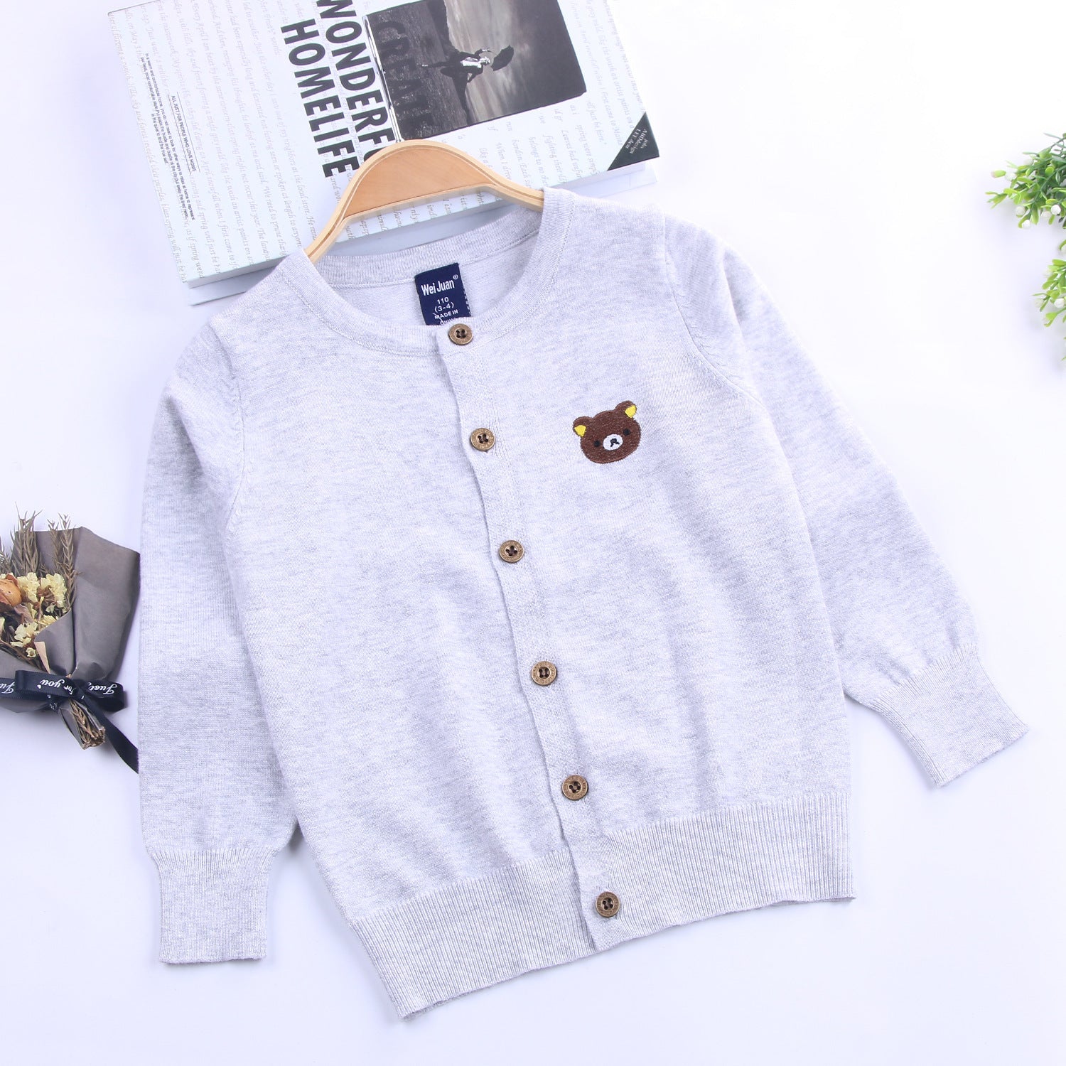 Klassieke Explosion Gebreide Vest met Geborduurde Beer voor Peuters / Kinderen