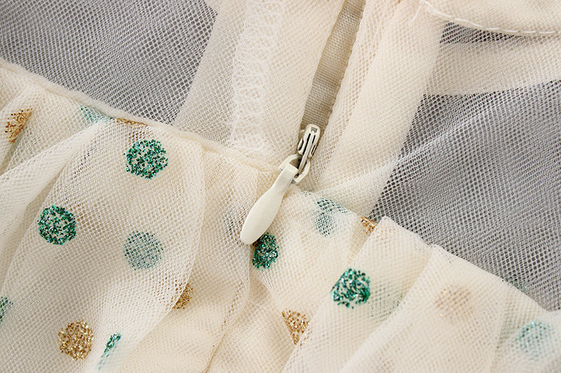 Casual Elegante Schattige Effen Kleur Mouwloze Katoenen & Tule A-lijn Prinsessenjurk met Gekleurde Stippen en Ruchesmouwen voor Meisjes
