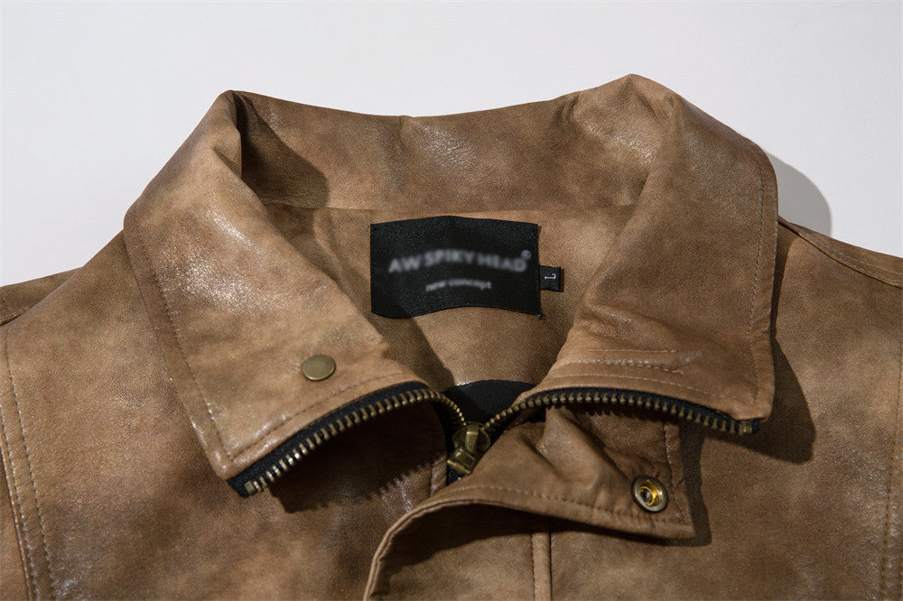 Contrasterende Kleur Jacket van PU-Leer voor Heren & Dames/ Plus-size