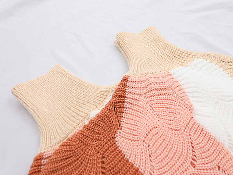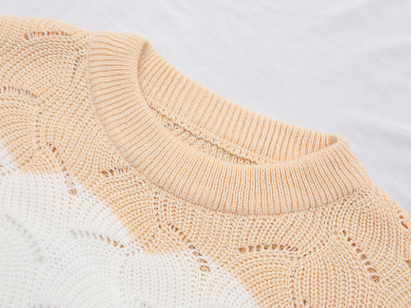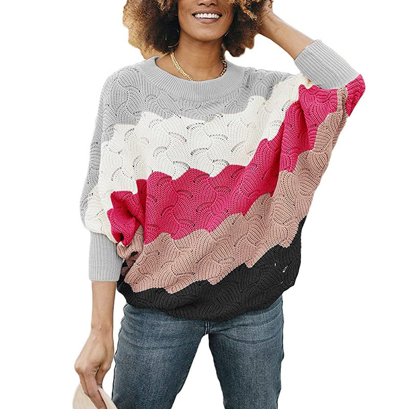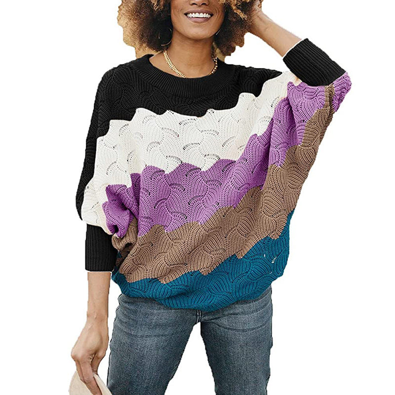 Europese en Amerikaanse Holle Gebreide Trui met Contasterende Kleur en Vleermuismouwen voor Dames & Meiden