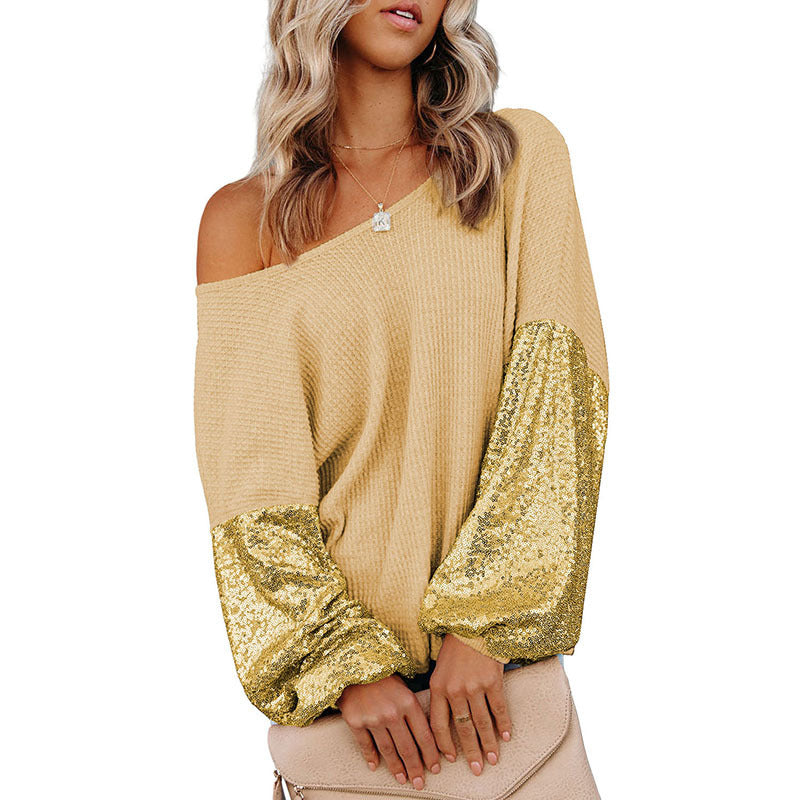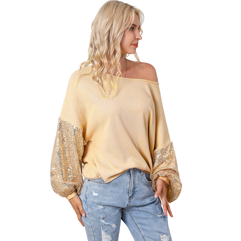 Europese en Amerikaanse Gebreide Trui in Effen Kleur met Open Rug en Pailletten voor Dames/ Plus-size & Meiden