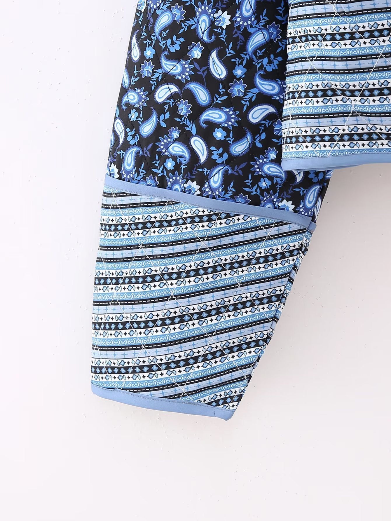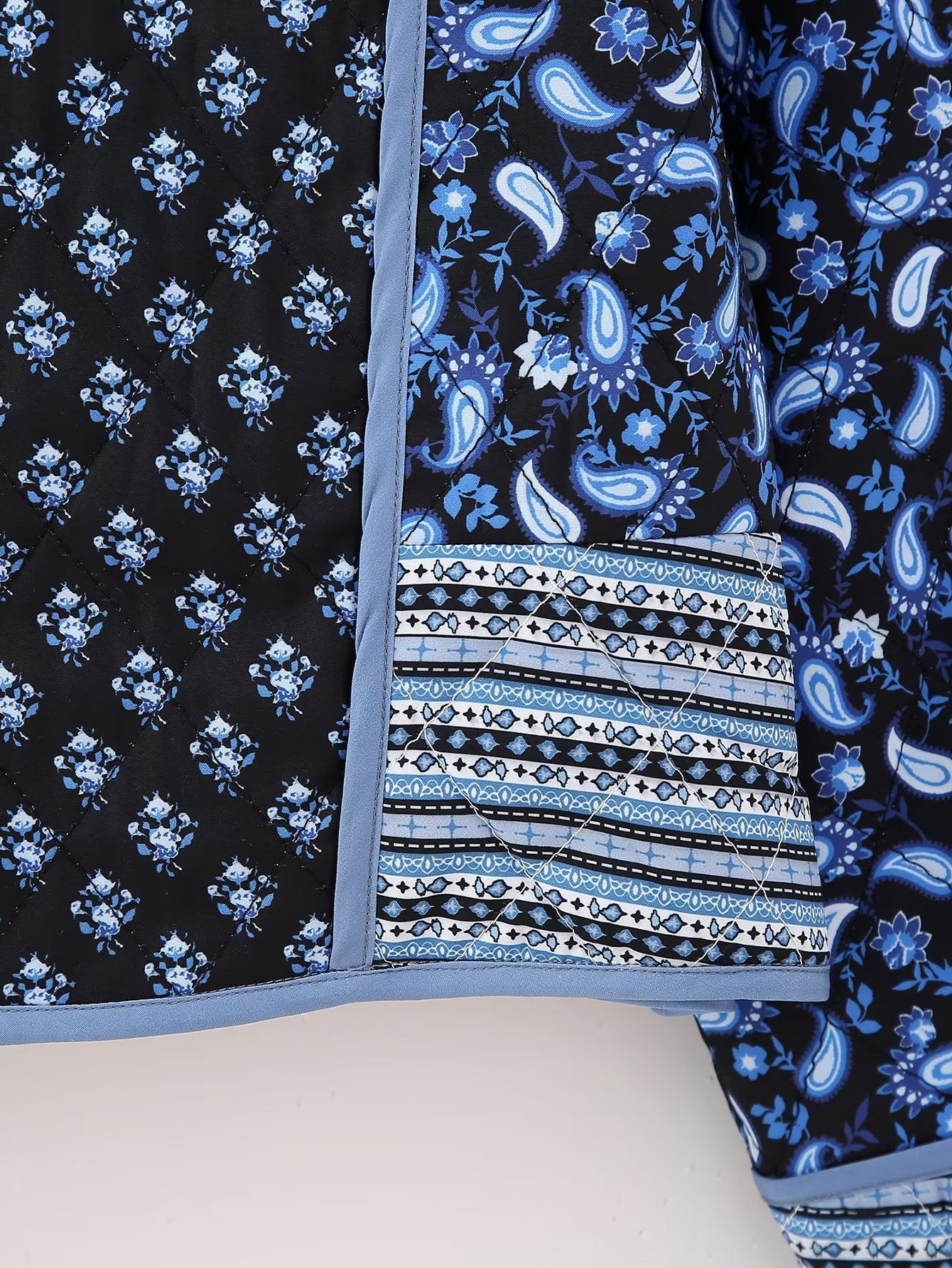Europese en Amerikaanse Dubbelzijdig Gewatteerd Cropped Jacket met Bloemenprint voor Dames & Meiden