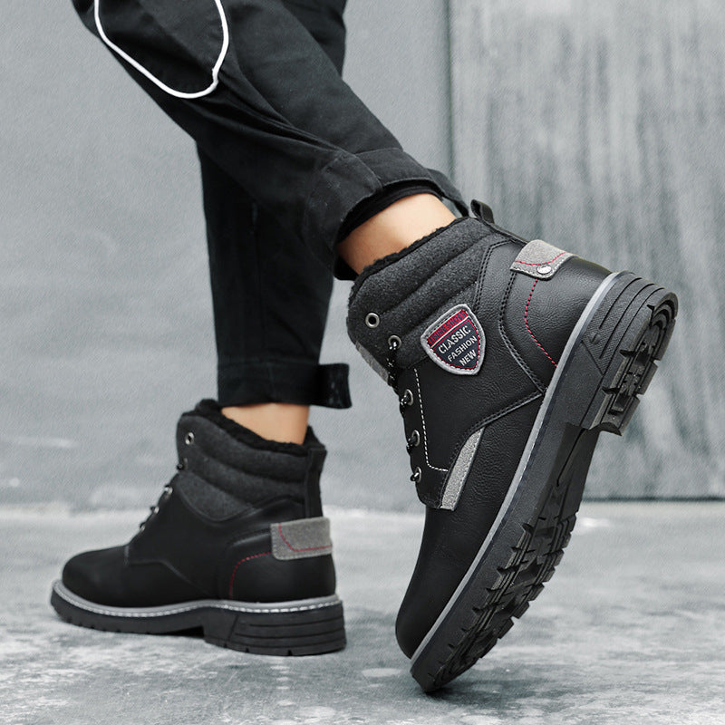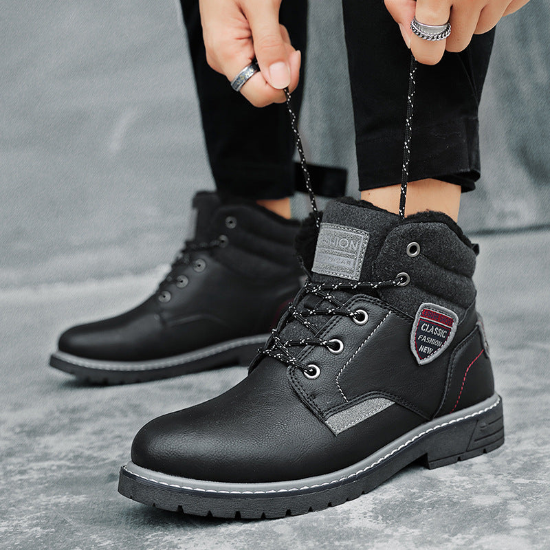 Europese Stijl Casual Outdoor Effen Kleur Bergbeklimming Sneeuwlaarzen van PU-Leer met Vertersluiting en Ronde Neus voor Heren