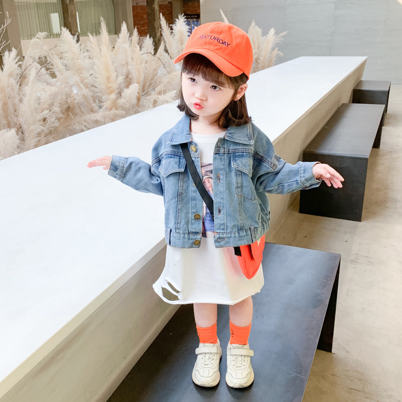 Casual Korte Spijkerjacket met Vierkante Kraag voor Kinderen