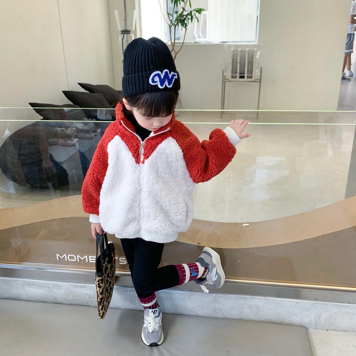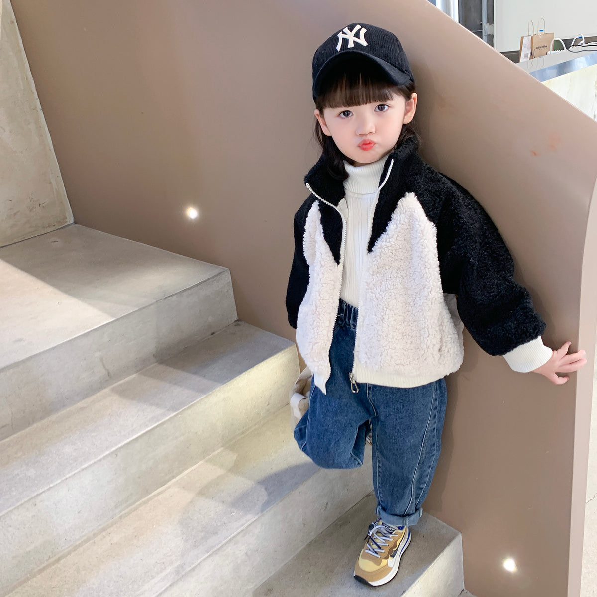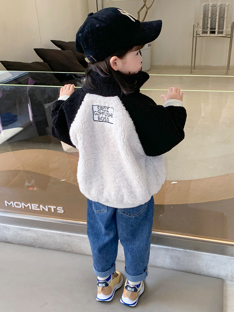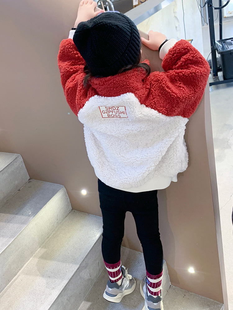 Twee Kleuren Fluwelen Dikke Vest met Rits voor Meisjes