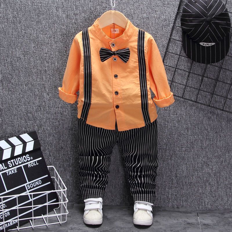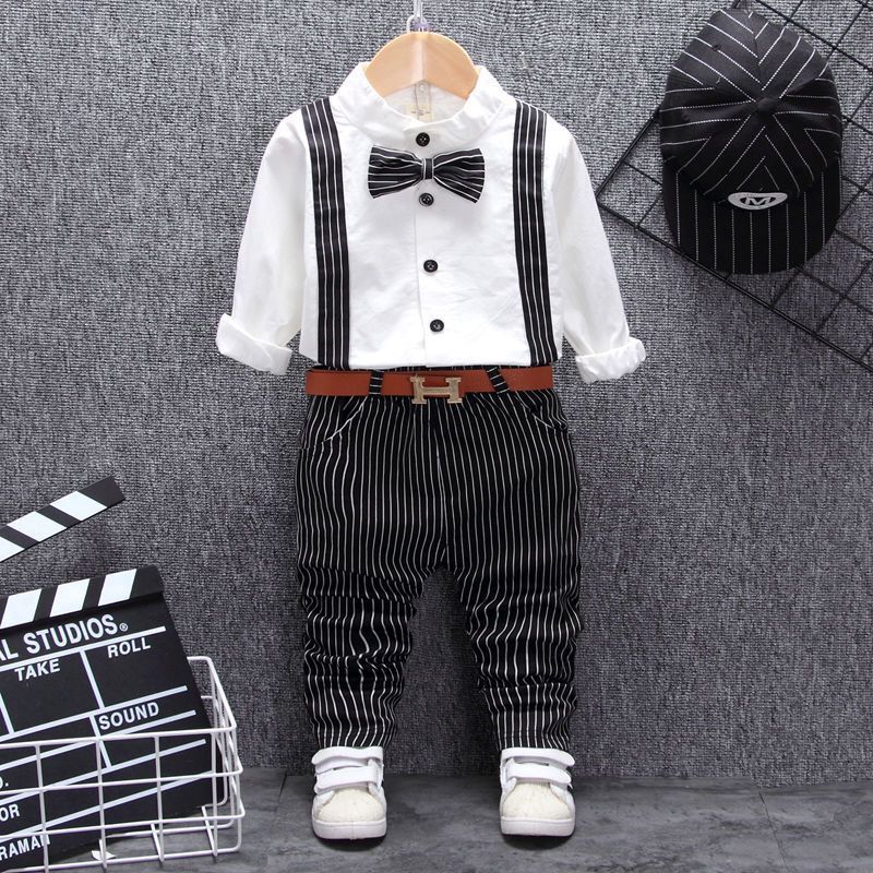 Western Stijl Driedelige Set voor Jongens Overhemd met Lange Mouwen en Strik & Broekpak