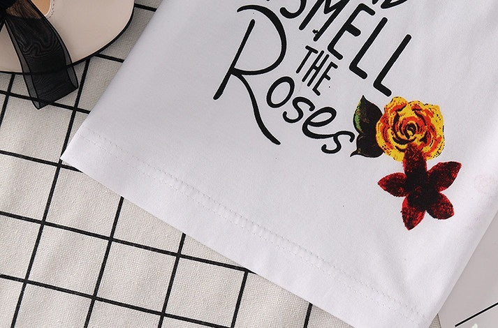 Meisjes-Outfit Twee-delig Wit T-shirt met Print & Denim Rok met Print