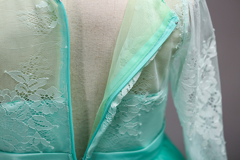 Elegante Feestelijke Lange Bloemenpatroon Galajurk van Kant en Tule met Lange Mouwen en voor Meisjes & Meiden