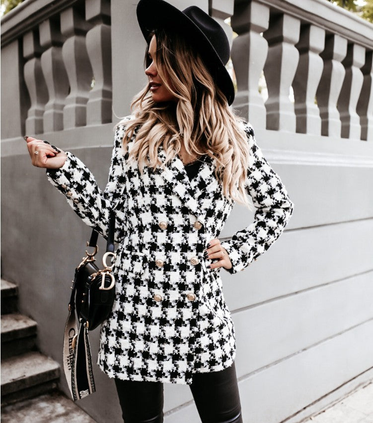 Vintage Formeel Geruite Blazer-jas van Wol met Knoopsluiting voor Dames & Plus-size