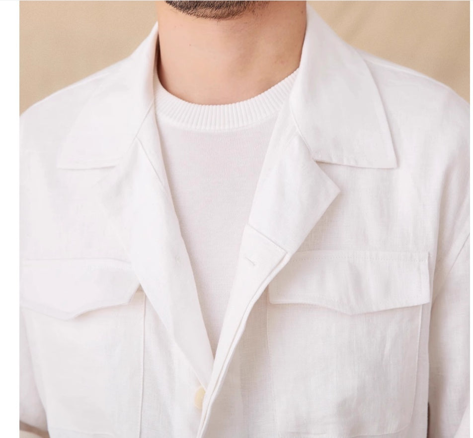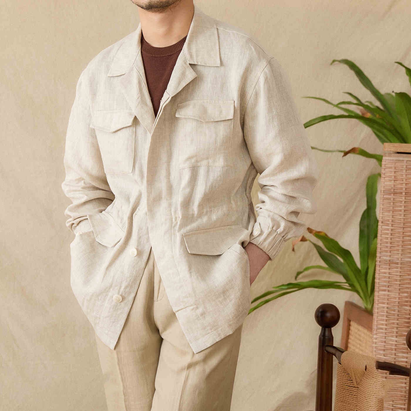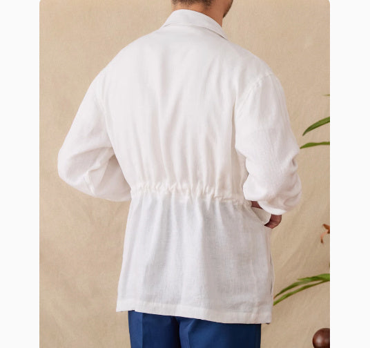 Trendy Losse Linnen Jacket met Knoopsluiting en Trekkoord voor Heren