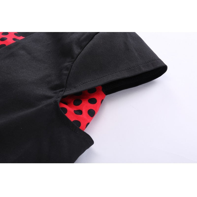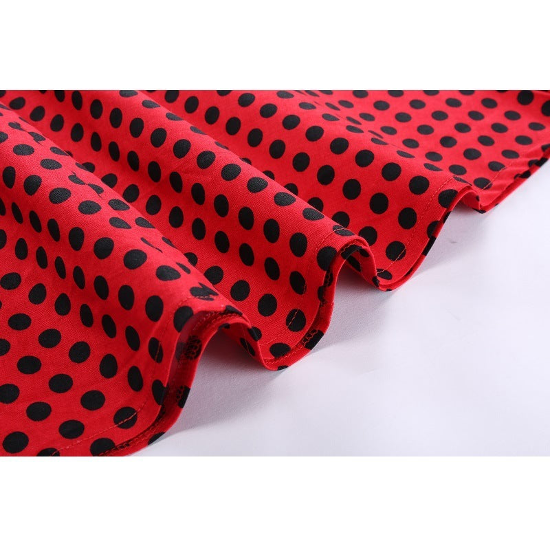 Hepburn Style Casual Vintage Rode Jurk met Korte Mouwen en Stippen-patroon voor Dames & Plus-size