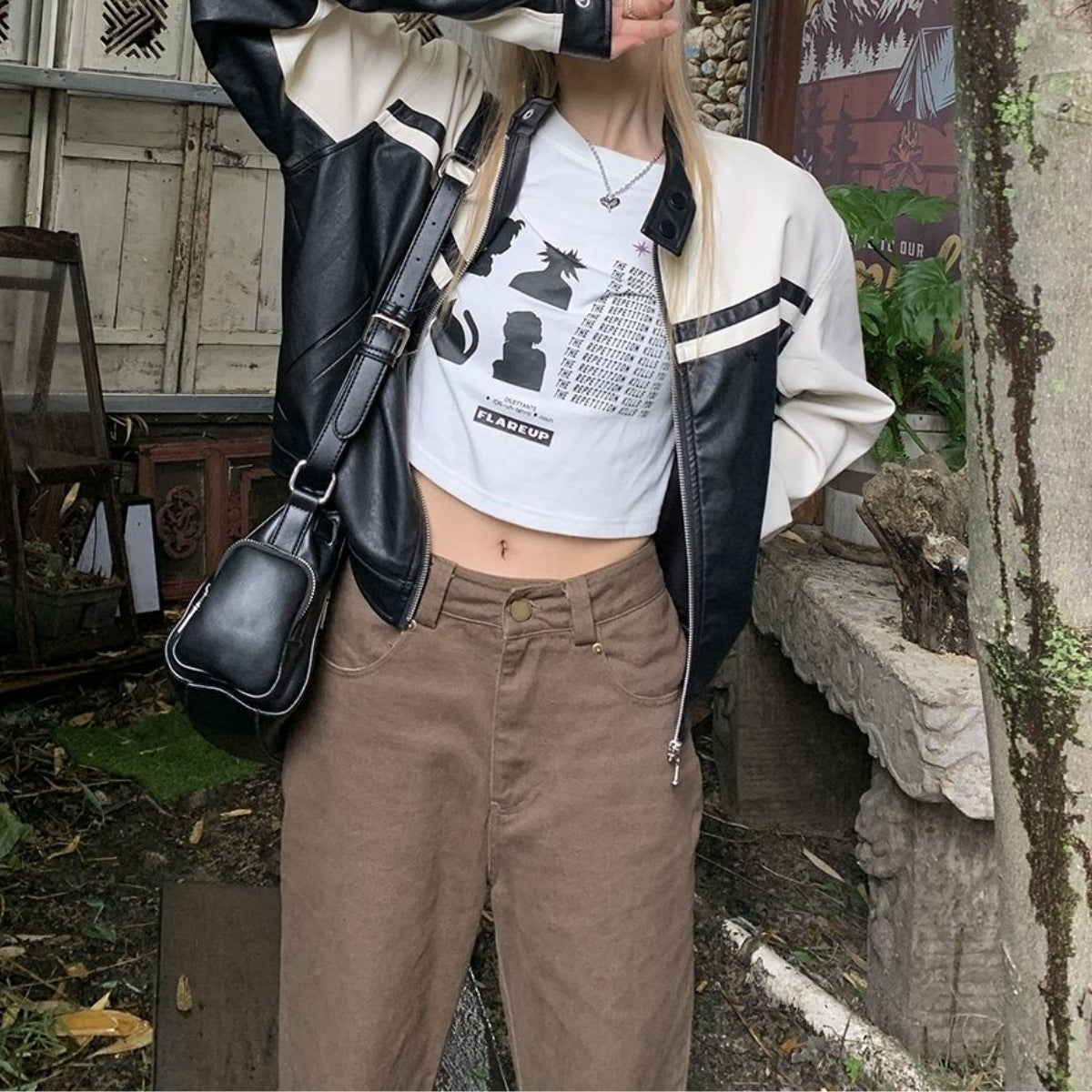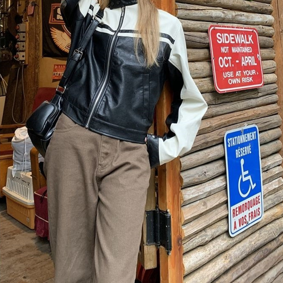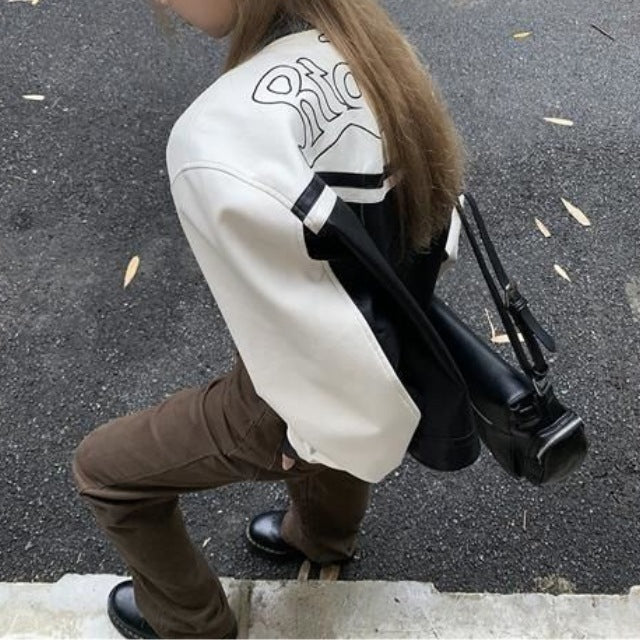 Populaire Locomotive Amerikaanse Retro Contrasterende Kleur Jacket van PU-Leer voor Dames
