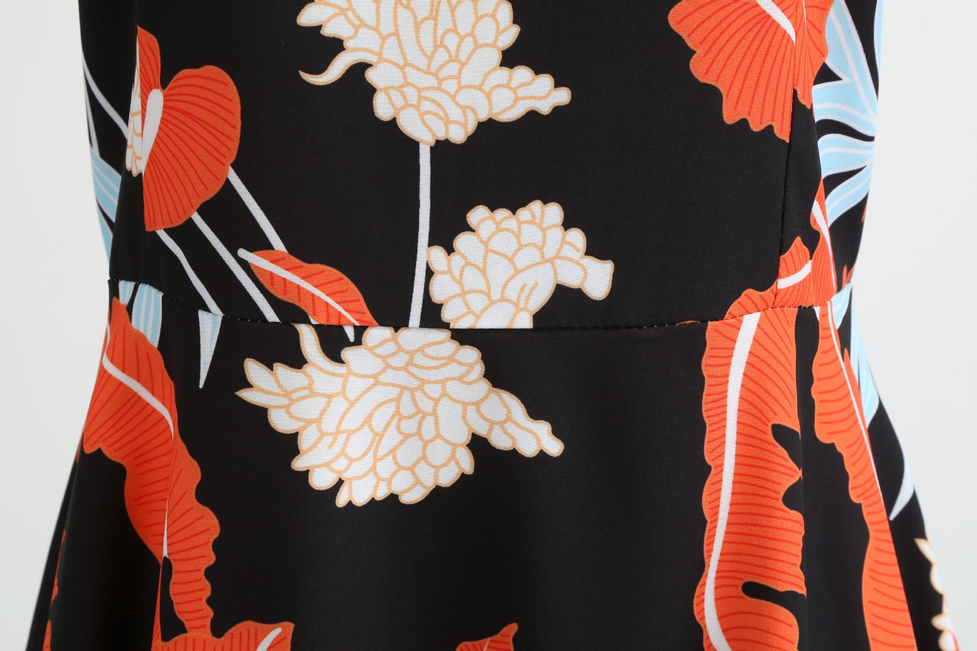 Hepburn Style Retro Afslankende-Taille Jurk met Ronde Hals en Bloemenpatroon voor Dames & Plus-size