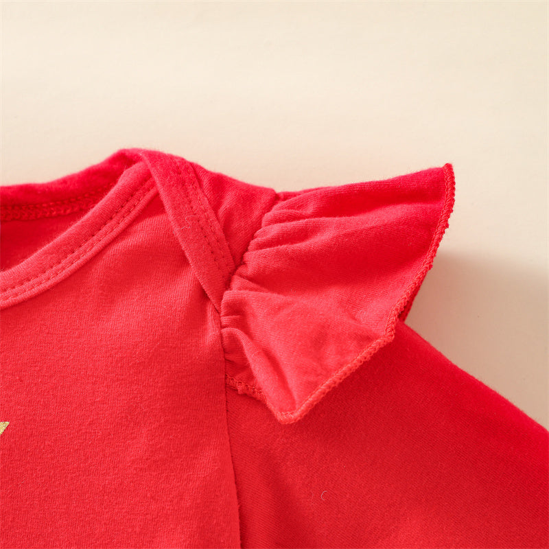 Kerstmode 3-delige Set Haarband met Strik Romper met Lange Mouwen en Print & Jarretellerok met Kerstprint voor Baby's/Peuters
