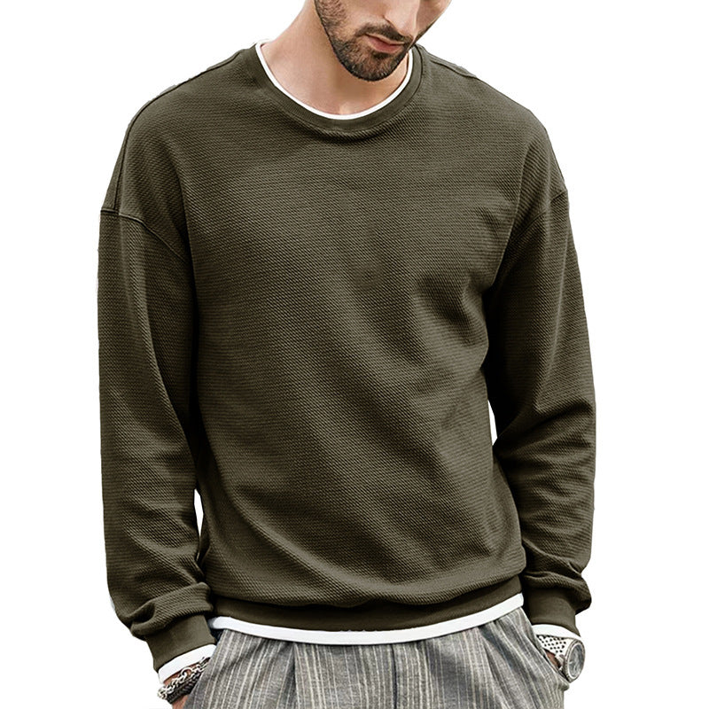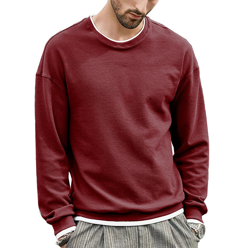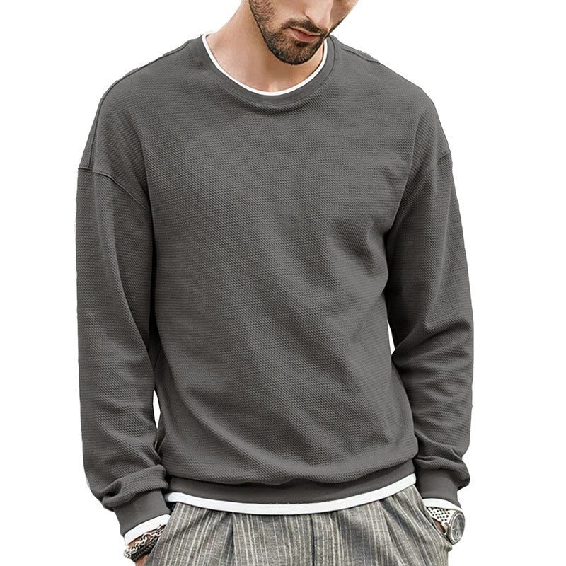 Amerikaanse Casual Effen Kleur Ronde Hals Trui met Wafelpatroon voor Heren