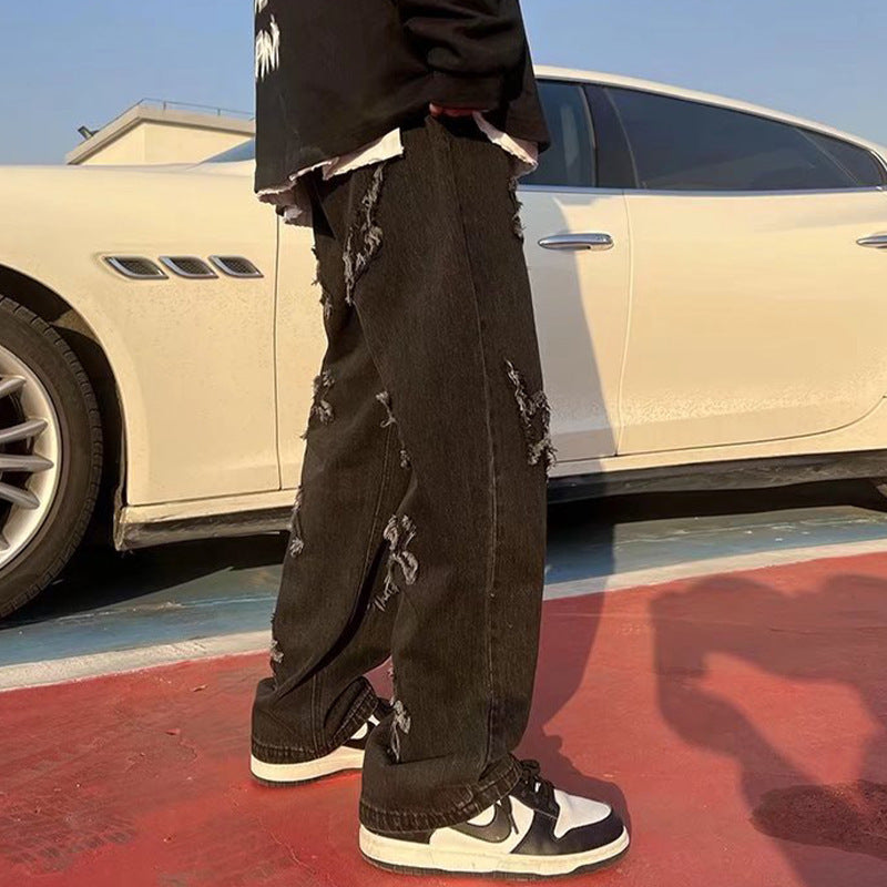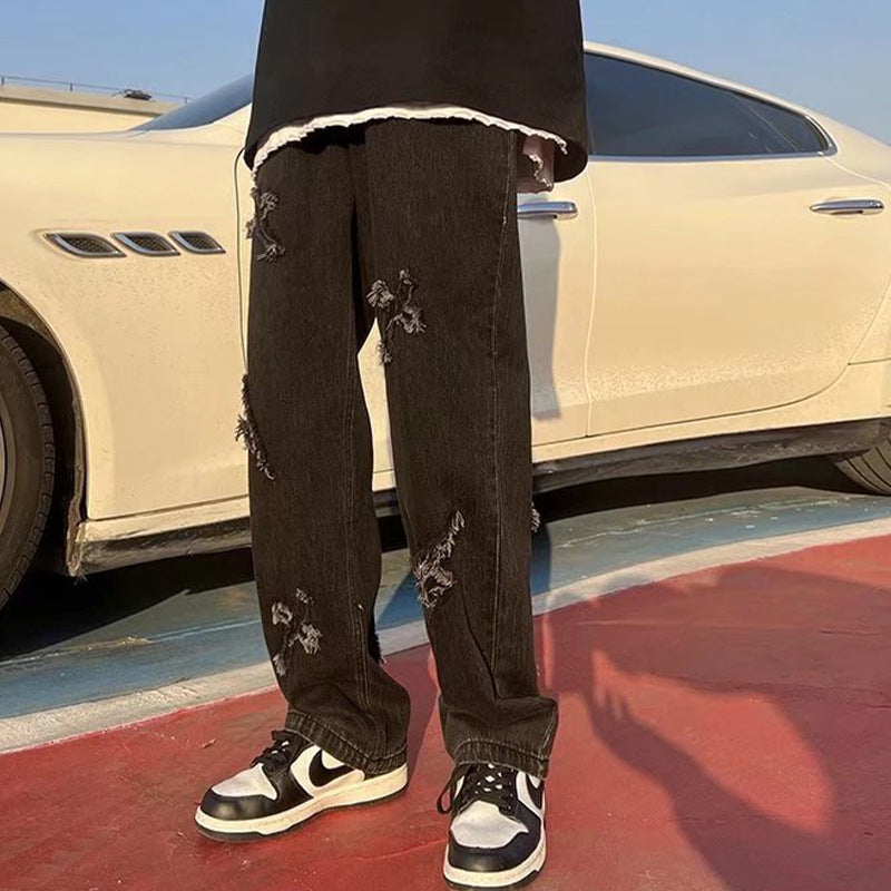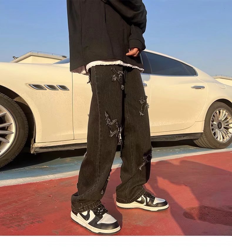 High Street Amerikaanse stijl Hip Hop Jeans met Patch en Wijde Pijpen voor Heren / Jongens & Heren Plus-size