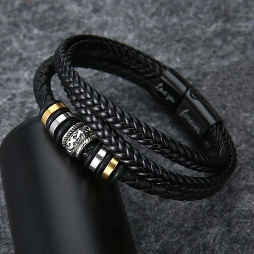 Stijlvolle Modieuze Gevlochten Vintage Touwarmband van PU-Leer met Roestvrijstalen Accenten voor Heren
