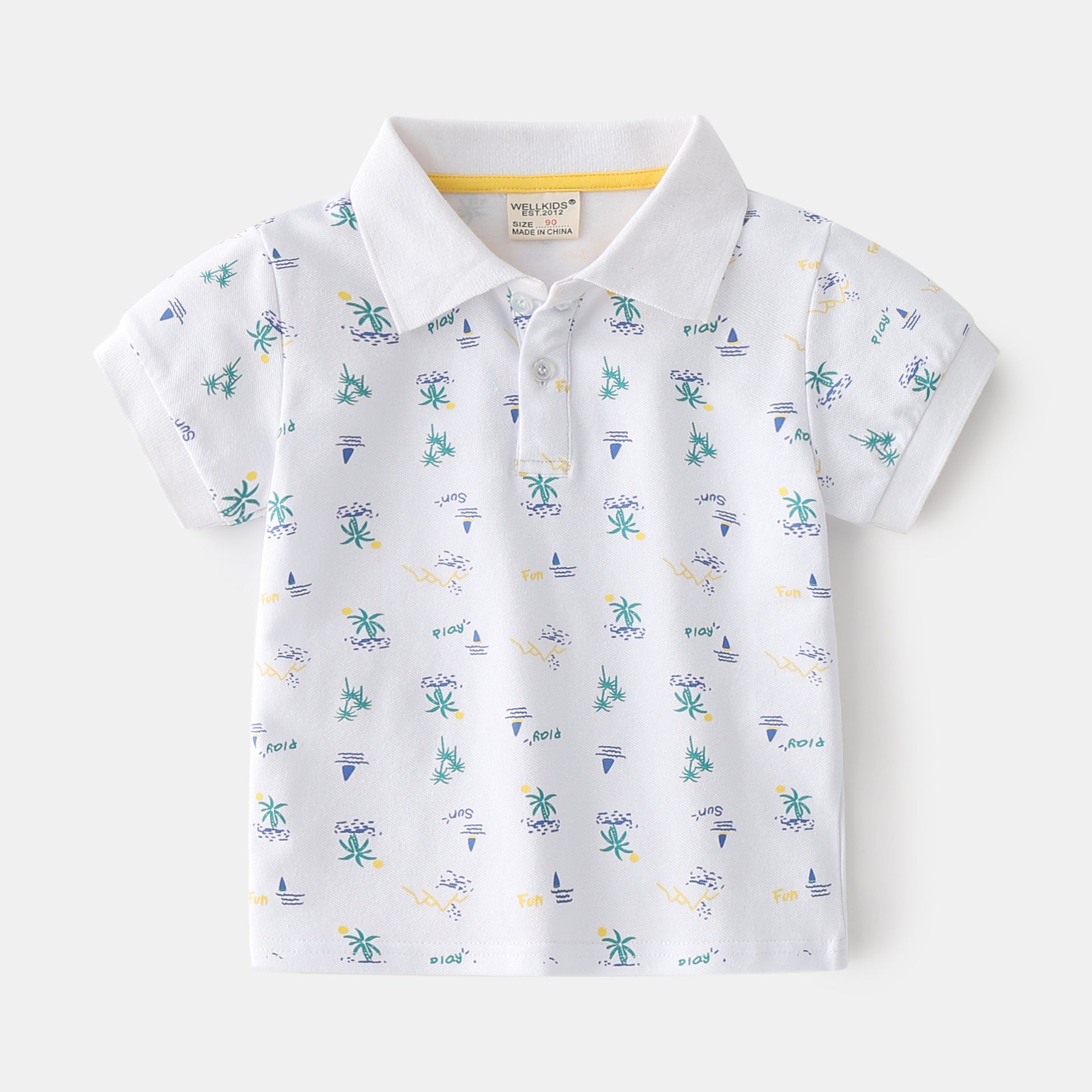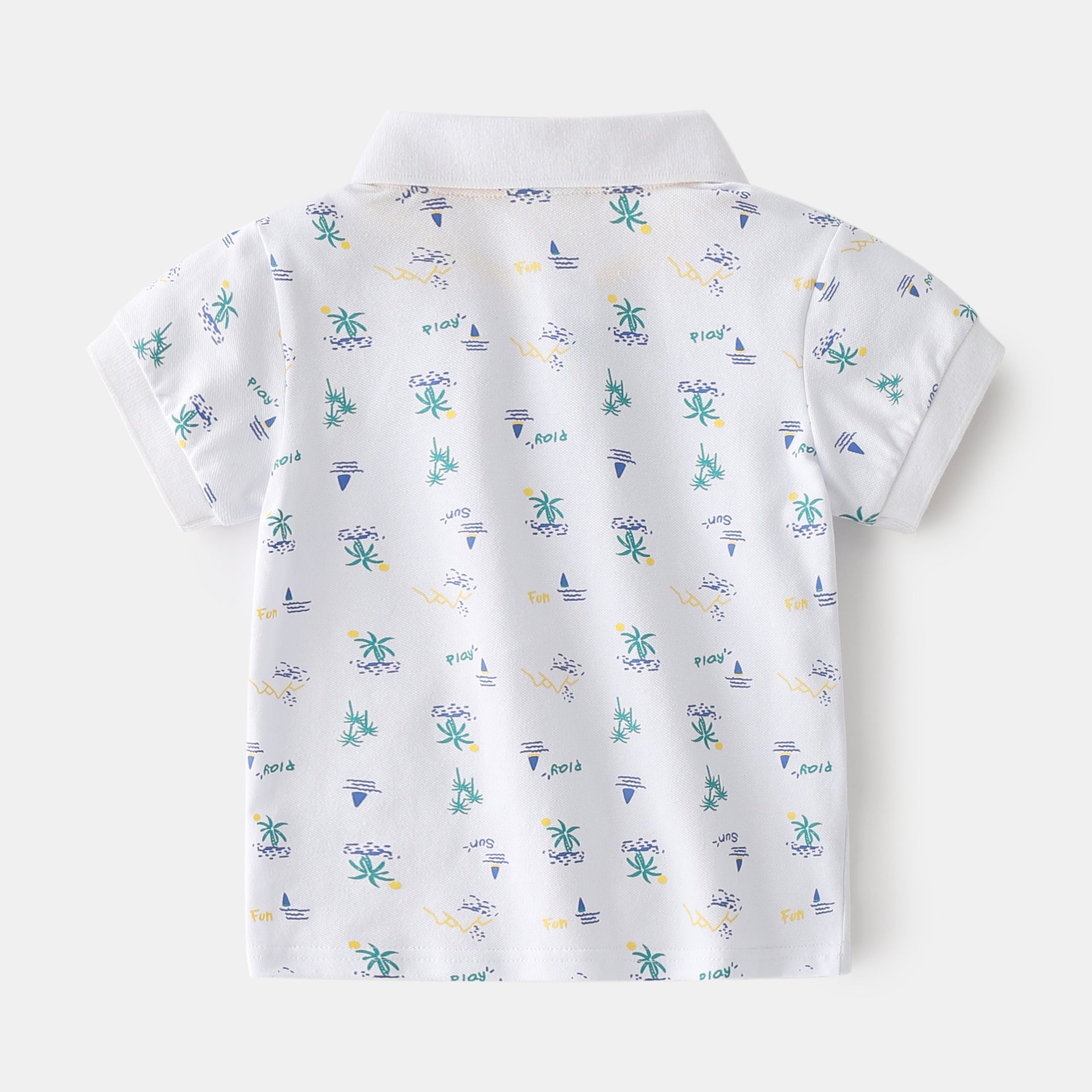 Stijlvolle Trendy Bedrukte Cartoon Print Katoenen Revers Poloshirt met Korte Mouwen en Knoopsluiting voor Kinderen