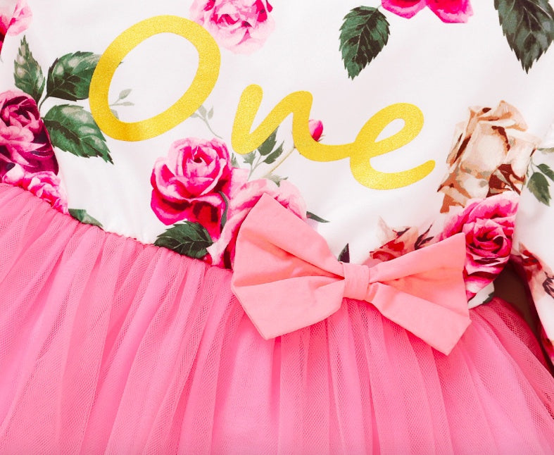 Baby/Peuterjurk met bloemenprint en ruches aan de mouwen