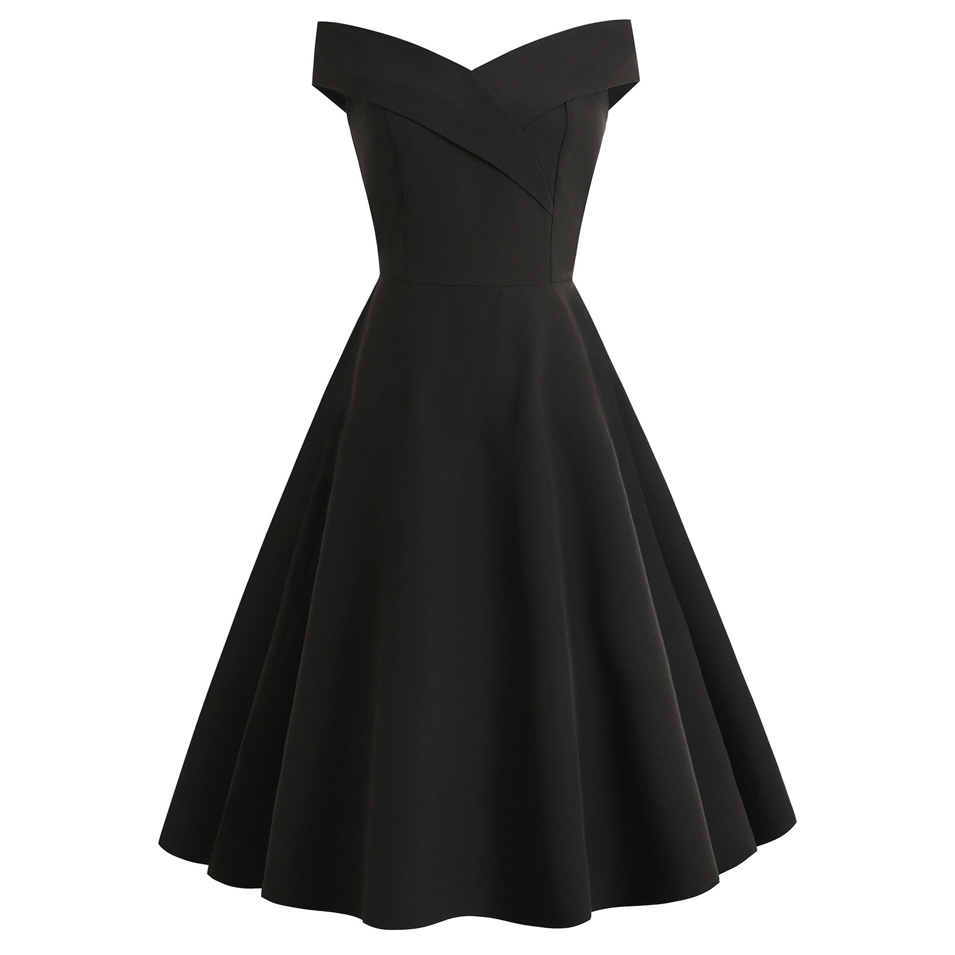Elegante Vintage Off-shoulder Cocktail/ Avondjurk in Effen Kleur voor Dames