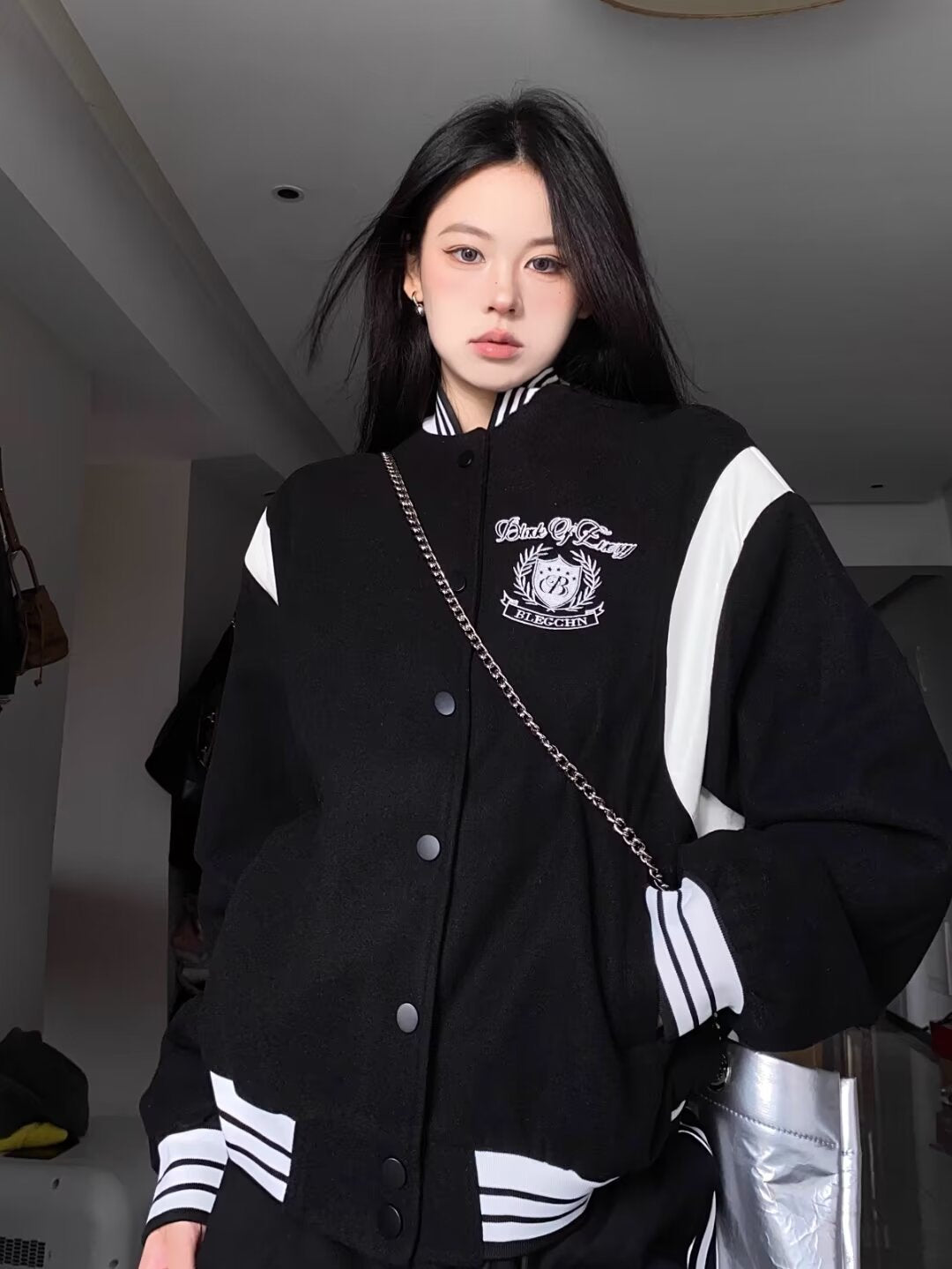 Amerikaanse Retro Gestreepte Honkbaljacket met Geometrisch-patroon voor Dames en Plus-size
