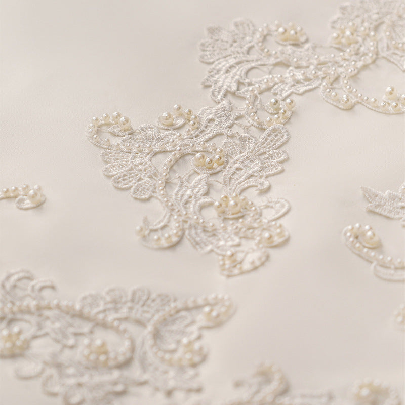 Elegante Effen Kleur Satijnen Off-Shoulder A-lijn Geborduurde Bloemenpatroon Lange Trouwjurk met/zonder een Lange Sleep en Schouderband voor Dames & Plus-size