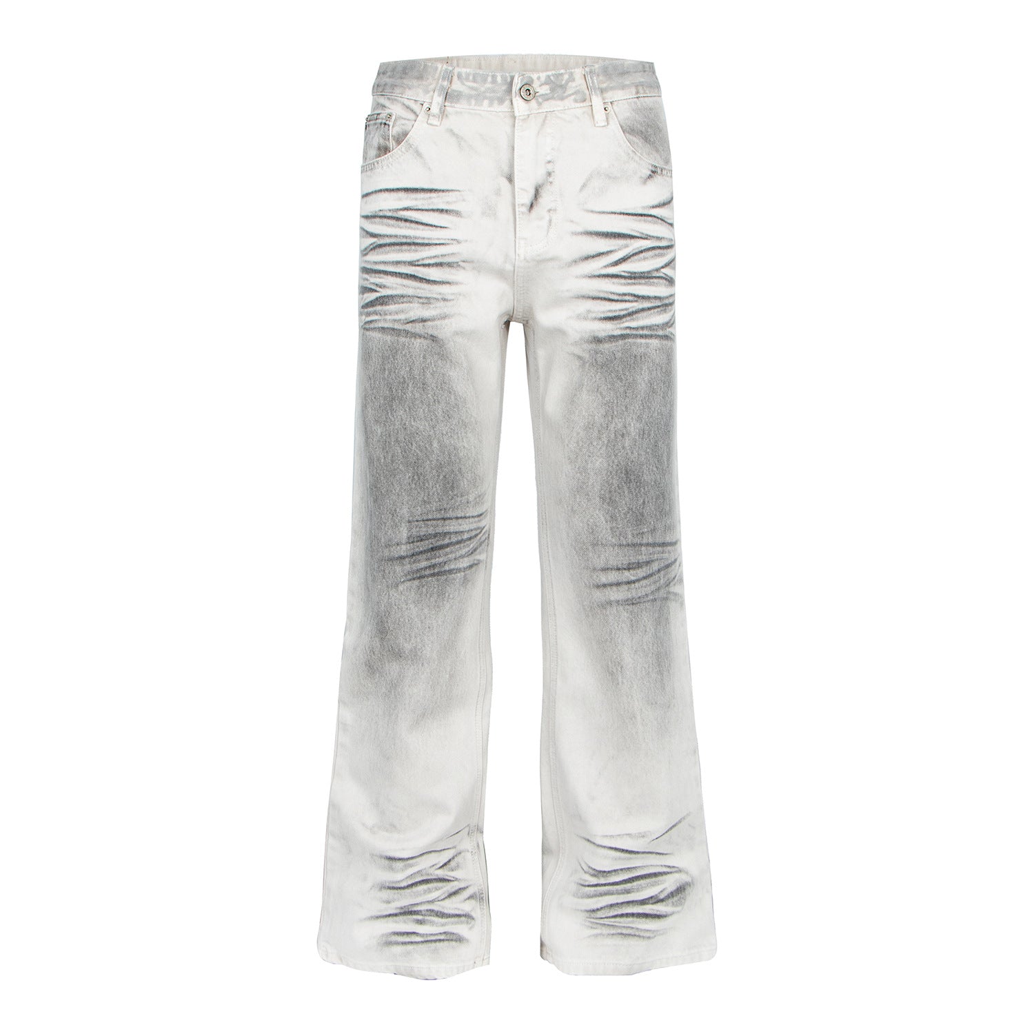 Literair Retro Effen Kleur Asymmetrisch Casual Vintage Washed Denim Jeans met Patchwork en Wijde Pijpen voor